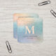 Holographic Brushed Teal Modern Monogram Elegant Square Business Card