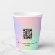 A holographic background, pink, purple and mint green. Personalise and add your business, company logo, your own qr code to your website or social media account. Black text.