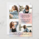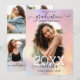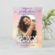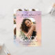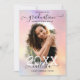 This pretty and girly graduation birthday party photo collage invitation is perfect for the trendy and stylish girl. It features a faux printed holographic iridescent foil (pink, peach, coral, yellow, blue, and purple) brushstroke halo on top of a large feature photo and elegant handwritten cursive script typography. On the back features four more customisable pictures and the party details with a full name monogram for an extra special touch. It's a sweet, chic, glamourous, modern, and cute bling design.