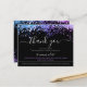 Elegant Holographic Glitter Black Purple Thank You Card