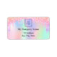 A trendy holographic background with unicorn colours and rainbow colours in pink, purple, rose gold, mint green. Decorated with faux glitter drips in rose gold, pink and purple. Personalise and add your business logo, name and address.