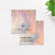 This girly and glamourous earring display card is the perfect way to stylise your packaging and add your own personal flair and personality. It depicts chic, pretty, unique, and luxurious faux printed sparkly rainbow colour glitter drips on top of a holographic iridescent foil background. The typography is an elegant cursive script with a modern serif font to match. The colour scheme includes pink, peach, blue, purple, gold, and coral. On the back, it includes contact information that can be changed completely or personalised to your details. It's a professional, elegant, and stylish way to display your product with pride. Just customise this design with your own business logo. (earring holes are printed markers only, puncturing must be completed by the customer)