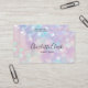 This modern holographic business card features your name or business name in script typography set against a trendy iridescent opal glitter background. Perfect for professionals in the beauty industry and beyond (esp. makeup artist, nail specialist, nail technician, beauty salon owner, hair stylist, beautician, aesthetician, and more). You can personalise the front with your name and title (or website address/location) and add your contact information (including website address and social media accounts), scannable QR code and "connect with us" text on the back.