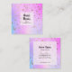 Elegant business cards feature faux gold confetti dots, holographic background and elegant calligraphy font.