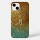 Holographic gold and sea green Glitter Monogram personalised Case-Mate iPhone 14 Case can customiuzed the name