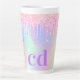 A trendy holographic background with unicorn and rainbow pastel colours in pink, purple, rose gold, mint green. Decorated with faux glitter drips in rose gold, pink and purple. Personalise and add your monogram initials. Bold purple coloured letters. A bit of everyday glam to brighten up your day!