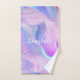 Pink, purple, blue holgraphic background. Personalise and add your name and monogram initials. The name is written with a hand lettered style script.