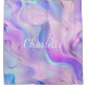Pink, purple, blue holgraphic background. Personalise and add your name and monogram initials. The name is written with a hand lettered style script.