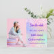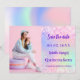 A modern and elegant Save the Date for a Quinceañera. Holographic, pink, purple mint green background. Personalise and add a photo, date and name.