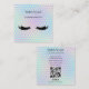 Holographic QR code Beige and Gold Lash Technician Square Business Card