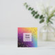 Elegant business cards feature faux rose gold confetti dots, holographic background and elegant calligraphy font.