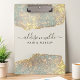 Add a touch of glamour to your workspace with this holographic glitter clipboard, featuring an elegant script font for a chic and personalised look. Ideal for professionals in beauty, hair, or wellness industries, this custom clipboard offers both style and functionality. Perfect for organising with flair, it’s a stylish accessory that adds a modern, luxurious touch to any setting.