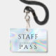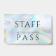 Custom Holographic Staff All Access Pass Event Badge that you can easily customise. Perfect for any event and corporate events. Completely repurpose this design template for other special occasions in your life by clicking the "Edit using Design Tool" nested under the "Personalise" button to change the background colour, fonts, and layout