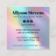 This pastel unicorn bold holographic rainbow QR code card is designed to turn heads and connect instantly. Featuring a vibrant foil holographic-look background and modern black typography, this square card layout includes a large scannable code to book online, social media handles, and contact details. Ideal for makeup artists, hairstylists, and beauty professionals who want to stand out at events, in salons, or inside client gift bags.