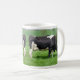 Photograph of a Holstein cow grazing in a pasture. Design repeated on both sides of the mug.