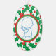 Holy Berry Baby’s 1st Christmas Customisable Ornament featuring an adorable baby boy in a green, red and holy berry patterned border on the front, while on the back there is the baby’s name.