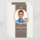 A handsome First Holy Communion invitation with a white background and tan florets. A brown centre panel is interrupted by a round wreath photo window accented with candles and a chalice. A gold cross is at the top. (<a href="https://www.freepik.com/free-photos-vectors/children">Children photo created by rawpixel.com - www.freepik.com</a>. <a href="https://www.freepik.com/free-photos-vectors/background">Background vector created by freepik - www.freepik.com</a>). <br/><br/>The card is easy to customise with your wording, font, font colour and choice of paper types.<br/><br/>Not exactly what you're looking for? All our products can be custom designed to meet your needs at no extra charge.<br/><br/>Simply contact us at heartfelthelper@gmail.com<br/><br/>Coordinating products available: