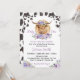 Our Cow Baby Shower invitation is the perfect way to invite friends and family to your party. The design features farm theme, with plenty of space for all the important details such as the date, time, and location of the party. Perfect for any age, gender and theme of the party, it is sure to impress your guests and get them excited for the celebration.