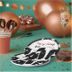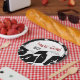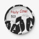 A graphic holy cow design by artist/designer Charmaine Paulson on paper plates.