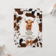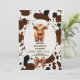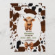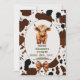 The invitation showcases a charming cowgirl theme, complete with a cute cowgirl hat and boots, a friendly cow, and a fun cactus accent. The colour palette boasts a mix of pastel and earthy tones, creating a delightful and inviting atmosphere.
