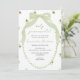 The back of the card features light green and white watercolor stripes, tying together the fresh, fun aesthetic. Ideal for spring and summer baby showers, this invitation is perfect for a gender-neutral, baby girl, or baby boy celebration. A great choice for parents-to-be who love bold themes, cheeky wording, and a mix of coquette charm with modern whimsy.