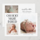 Welcome your little one to the world and share the joy of the season with our elegant Christmas birth announcement card with a little bit of humor. The text says "oh holy night, indeed." Featuring two adorable baby photos on the front and one on the back, this design combines modern minimal typography with festive charm. Personalize it with your baby’s name, birth date, weight, and length, plus a heartfelt thank-you message to friends and family. Perfect for sending holiday greetings while introducing your newest family member. Ideal for winter births, holiday baby showers, or as a keepsake for loved ones. Background is white.