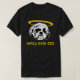 I give wanted to give this a 4 instead of a 5 because these Basic DARK T0shirts run unexpectedly SLIM or Narrow. Which is great if you do not have a potbelly, but I have a paunch. It isn't the shirt's fault that I've got a beer belly. The design and shirt itself is a quality cotton shirt. The color is more of a deep purple, but still a very pretty color. The Basic DARK T-shirts run a bit SLIMMER than the Basic Ts. The neck is a fraction narrower (or seems to be narrower) also. I'm a paunchy middle-aged woman and my neck is 12 inches (31cm) thick and the neckline fell about the same as in the photo of the man, and I had the desire to tug it a bit. So if you're a thick necked man or like loose shirts, be aware these are slimmer shirts. Once I get rid of my lockdown paunch it'll look great. The shirt washed well in cold water with no apparent bleeding. We don't have a dryer, so it hung dry. Did not shrink. Love the colors and the design. The design looks smaller on my shirt than it does on the model on-line. But still, it looks good on the shirt. The printing looks as it does on the model, just the size seems fractionally smaller. Washed garment in cold water, hung dry and design appeared unaffected.