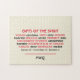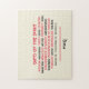 Stylish, modern SPIRITUAL GIFTS inspirational Monogram jigsaw puzzle, with red and black typography set against a plain white background. The gifts are taken from the Bible books of Romans 12, 1 Corinthians 12 and Ephesians 4, and represent the giftings given by the Holy Spirit to believers. The 'major' gifts are those denoted by red upper case text, and the 'minor' gifts by black lower case. The main heading is CUSTOMIZABLE, so you can change it to SPIRITUAL GIFTS, and add a name in place of the Scripture references. Underneath there is a customisable MONOGRAM, which you can replace with your own initials, name or text of choice. This would make a stylish gift for Christmas, Birthdays, for New Christians, Bible students, and for any occasion throughout the year.