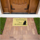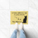 A cute custom doormat you can personalise with your name, made for cat lovers. The phrase "A home without a cat is just a house" is decorated with kitty footprints and the silhouette of a sitting cat. The background is shown in mustard yellow, but you can change it to the colour of your choice by clicking on "customise it".