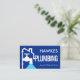 An all dark blue cover features a pipe-faucet home frame that is leaking water. The home pipe is connected to your business name "PLUMBING" alongside a slogan caption near the base. You can change both these captions to suit your own service needs. At the top of the card lies your prestigious name.
