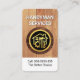 A timber layer features a round wood placard near the centre that houses a gold "home handyman tools" logo you can use. Over at the top is the business name "HANDYMAN SERVICES" which you can change with the contact details at the base, inside a white layer.