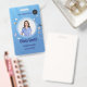 Easily personalise this blue professional healthcare employee photo ID pink badge with your custom details.