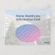 Everyone should have a Home Healthcare Information card to head off any emergency. Add and image of yourself or loved one for positive identification. After a recent experience with my mother I found I was repeatedly asked for the information contained on this card. It's perfect for quick reference if you should require home health assistance for a loved one. Simply fill in the information and place by the telephone or some other easily accessible place.