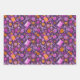 Wrapping paper set, featuring lovely pattern, sewing supplies - scissors, buttons, spools of thread, needles. This design, elaborated from handmade paper collage, makes a great gifts for crafters and sewers. Dark blue, violet, purple, red and yellow colours.