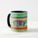 Colourful faux ceramic tile background with 4 different coloured caravans. This cup can be customised to fit your taste. You can change the filter and use your own quotes.