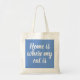 Home is where my cat is white script blue tote bag. Perfect for the cat lover.