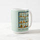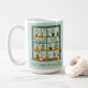 New Home or welcome home mug featuring beautiful design of hand drawn potted plants sitting on a window sill shelf. The word 'Home' is written on one of the shelves, and 'home is where my plants are' underneath - which you can change, if preferred by clicking on the 'personalise' button. A pistachio green colour for the background.