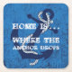 Home Is Where The Anchor Drops Nautical Quote Text Square Paper Coaster