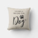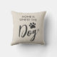 This dog lover's throw pillow features a dog's paw print and reads, "Home is where the dog is."