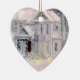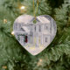 This charming vintage victorian home has their front door decorated for Christmas holiday. The back has customizeable text that says "Home is where the heart is".