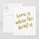 Home Is Where The Heart Is Quote Faux Gold Foil Postcard
