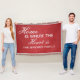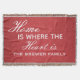 A personalised throw blanket that features the family's last name written on a red textile background along with the text "Home Is Where The Heart Is". This custom blanket makes a great gift for any occasion.