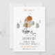 Home is where the Hygge is Christmas Holiday party invitations. Simple and primitive invitaitons with a Nordic Scandinavian style in a neutral colour palate. Features a cute cottage in the forest and the back is a quirky graphic with snowflakes.