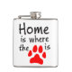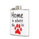 A wordplay with the quote "Home is where the heart is", this liquor flask has the words "Home is where the [paw print picture] is", with the paw print picture in red, representing the "heart". The perfect gift for pet lovers.