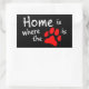 Think of the quote "Home is where the heart is" - this set of rectangle stickers has the words "Home is where the [paw print picture] is", with the paw print picture in red, representing the "heart". The perfect gift for pet lovers.