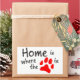 A wordplay with the quote "Home is where the heart is", this set of rectangle stickers has the words "Home is where the [paw print picture] is", with the paw print picture in red, representing the "heart". The perfect gift for pet lovers.