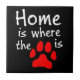 A wordplay with the quote "Home is where the heart is", this ceramic tile has the words "Home is where the [paw print picture] is", with the paw print picture in red, representing the "heart". The perfect gift for pet lovers.