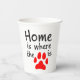 A wordplay with the quote "Home is where the heart is", this white paper cup has the words "Home is where the [paw print picture] is", with the paw print picture in red, representing the "heart". The perfect gift for pet lovers.