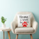 A wordplay with the quote "Home is where the heart is", this white throw pillow has the words "Home is where the [paw print picture] is", with the paw print picture in red, representing the "heart". The perfect gift for pet lovers. Also has a black version! Check out the store for more.