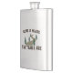 The product is a good size and came exactly as it was pictured. The lid is not attached to the flask, which could be dangerous on drunken nights... The print came out surprisingly well and looks very sharp. Would definitely recommend.
